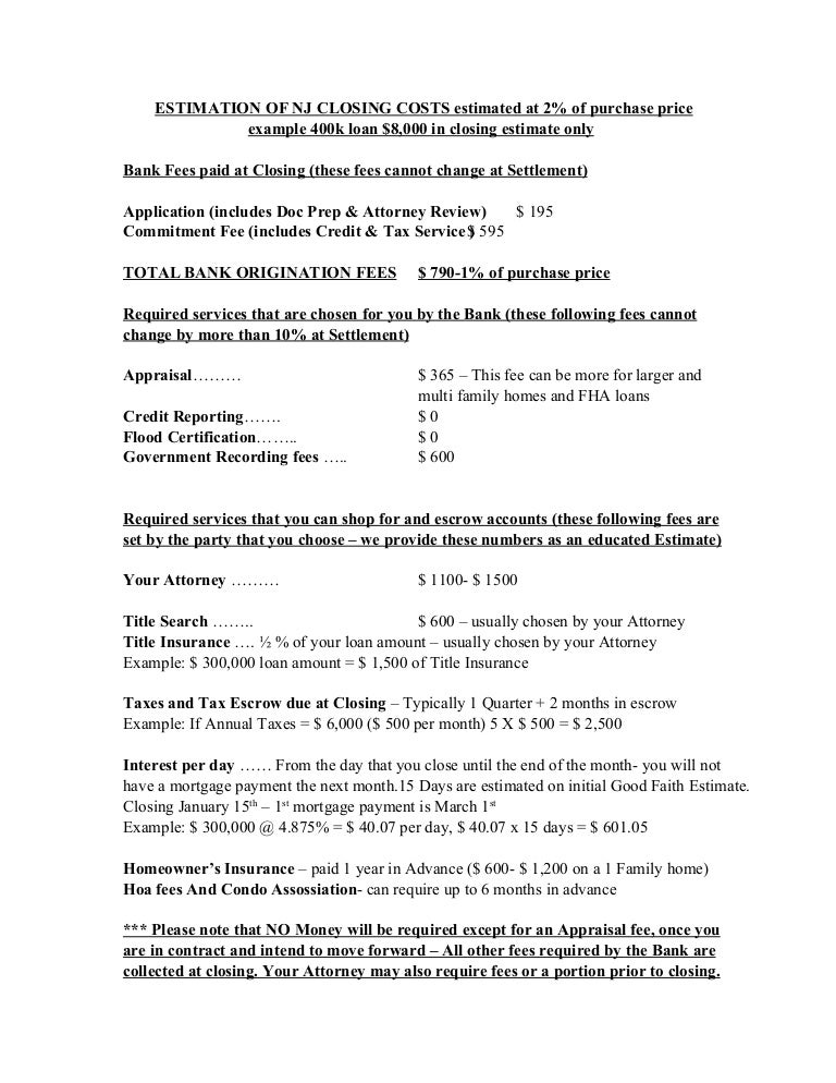 On the other hand buyers disburse 2-6 of the purchase price to closing costs. Tax Service Fee FHA VA - add 115. Tax Service Fee 50 This fee is paid to research the existing property taxes for the property and to see whether the taxes have been paid to date or if they have been paid for.